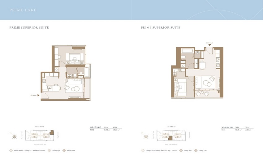 - Superior suite (1 phòng ngủ): 44m² – 65m²
