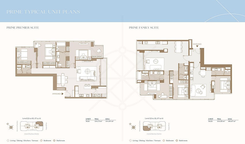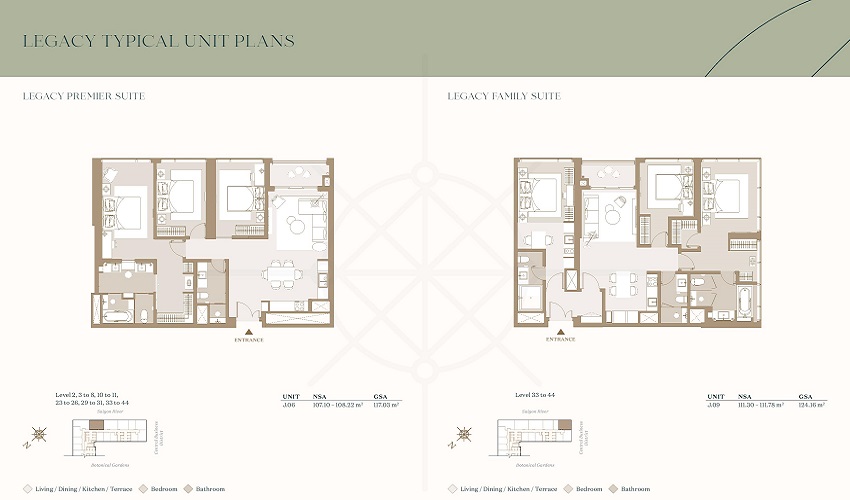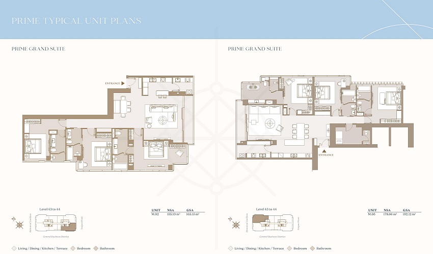 - Premium suite anh Grand suite (3 phòng ngủ): 121m² – 184m²