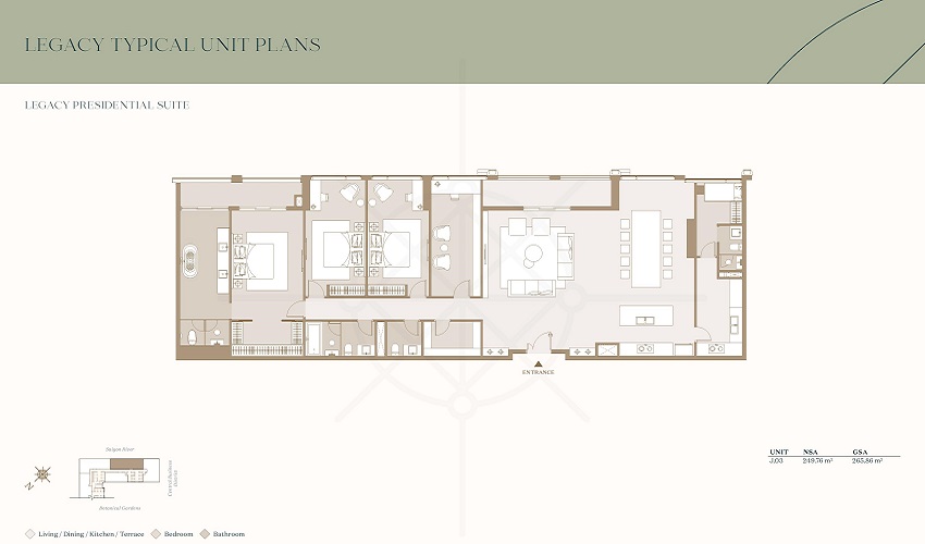 - Presidential suite (Penhouse): 164m² – 265m²