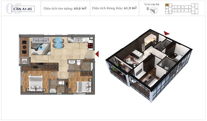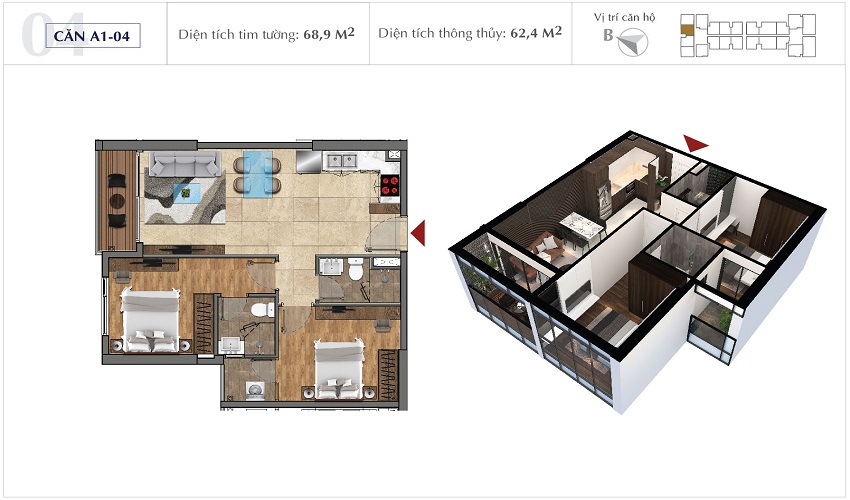 | Diện tích căn hộ: Từ 69m2 - 131m2 (2pn - 4pn)