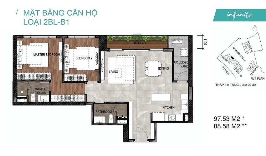 >>> Căn 2 phòng ngủ: 79m2 - 106m2