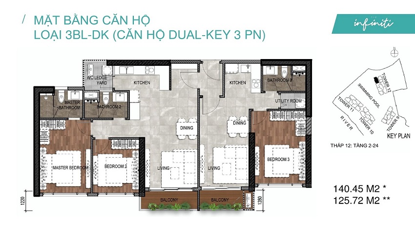>>> Căn 3 phòng ngủ: 121m2 - 145m2