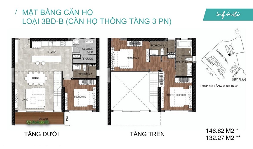 >>> Duplex 3 phòng ngủ: 150m2 - 167m2