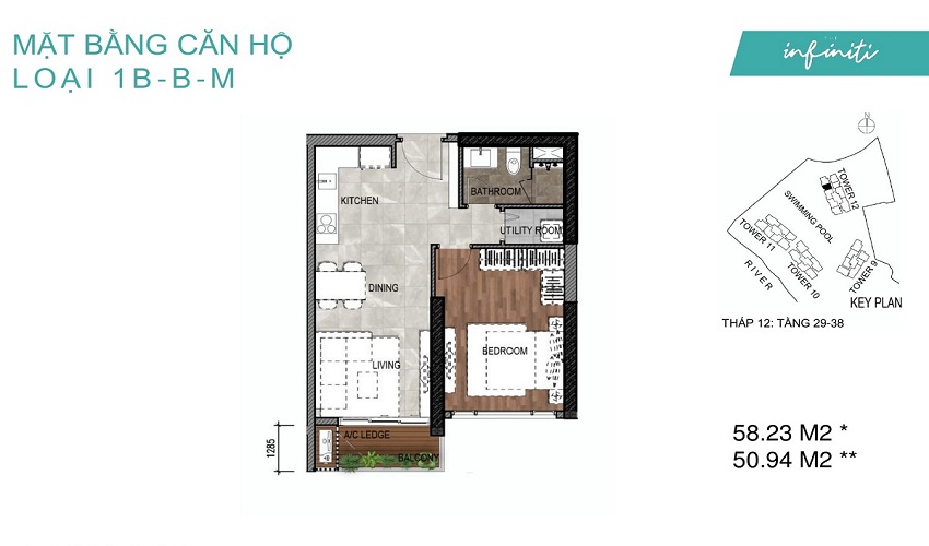 >>> Căn 1 phòng ngủ: 54m2 - 56m2